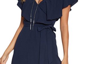 YOINS Kleid Damen Sommer Kurz V-Ausschnitt Schulterfrei Kleider Elegant Strandkleider Minikleid Partykleider