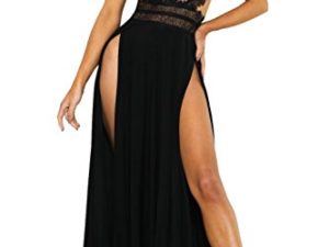 YACUN Damen Lang Kleid Sommer Maxi Hoch Split Spitzen Abend Rückenfrei Party Kleid