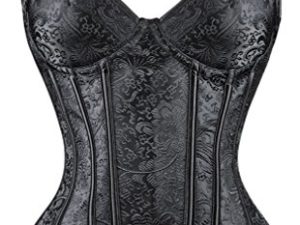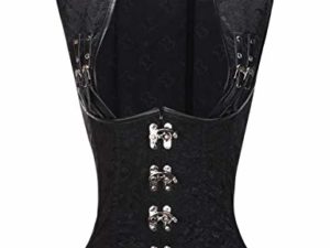 FeelinGirl Damen Korsett mit Stahlstäbchen – Brokatmuster – Retro/Gothic/Steampunk-Stahl ohne Knochen, Schwarz 1, XL(EU…