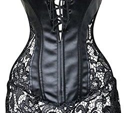 Grebrafan Damen Reißverschluss Korsett Kunstleder Corsage Rock