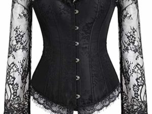 EUDOLAH Damen Corsage Vintage Corsett Gothic Bustier Vollbrust Top mit Ärmel Gothic Korsett Bauchweg Bustiers Top