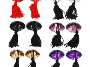 Creamlin Sequin Pasties für Womens Lingerie Brust Blütenblatt Pasty Kleber wiederverwendbar mit Quaste