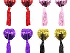 EQLEF Dessous Brust Blütenblatt Pasty, Klebstoff Pailletten Pasties mit Quasten, Nipple Covers Set von 4 (rot, golden…