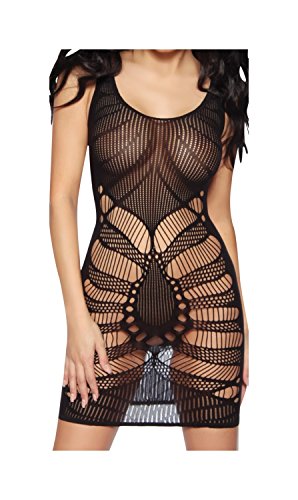 Damen Mini Netzkleid Catsuit Schwarz Rot Dessous Fischnetz Gogo Reizwäsche S/M Farbe schwarz