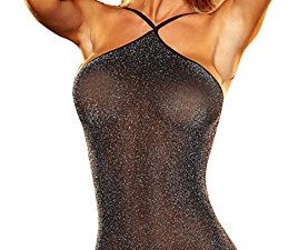 Carolilly Damen Transparent Kleid Sexy Clubwear Neckholder Babydoll Dessous Glizer Kleid mit G-String