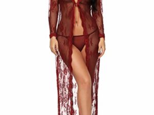 BESDEL Frauen Sexy Dessous Robe Durchsichtig Nachtwäsche Langes Spitzenkleid Kimono Cardigan