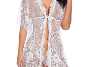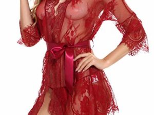 FEOYA Damen Gown Dessous Kimono Spitze Robe Mesh Bikini Cover up Spitze Bat Negligee Lingerie set