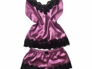 FEOYA Satin Nachthemd Damen Sexy Dessous Set Spitze Nachtwäsche Negligee Babydoll Zweiteilige Reizwäsche Lingerie mit…