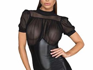 NAVARCH Damen Sexy Dessous Frauen Mesh Sexy Hollow Out Negligee Babydoll Wäsche Netzs Flexibel Wetlook Leder Minikleid…