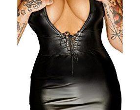 MSemis Damen Wetlook Dessous – Lack Optik Bodycon Minikleid Brust Harness Neckholder Partykleid mit Kette Clubwear…