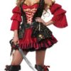 Das Skelett Damenkostuem besteht aus einem kurzen schwarz-Rot Kleid mit Tutu, Haarreif und ein Paar Handschuhe.